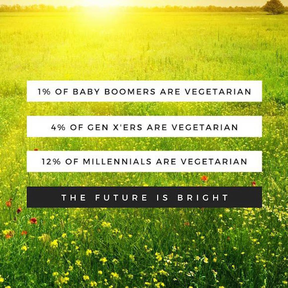 In 2009, a tiny one percent of the US population reported eating vegetarian or vegan. Now, 5% of the United States population is vegetarian and half of those people are vegan.That's about 16 million people in the United States that are no longer eating meat and those numbers are always growing.