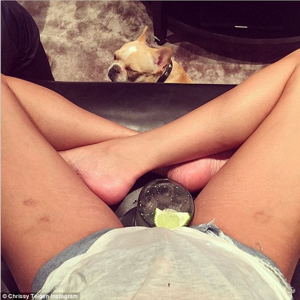 Most recently, Chrissy posted another photo on her personal Instagram. It was of her crossed legs, where the viewer can clearly see bruises and *gasp* stretch marks on her legs. But if you're a model, you can't have stretch marks, right? Wrong. The caption read, "Bruises from bumping kitchen door handles for a week. Stretchies say hi!"