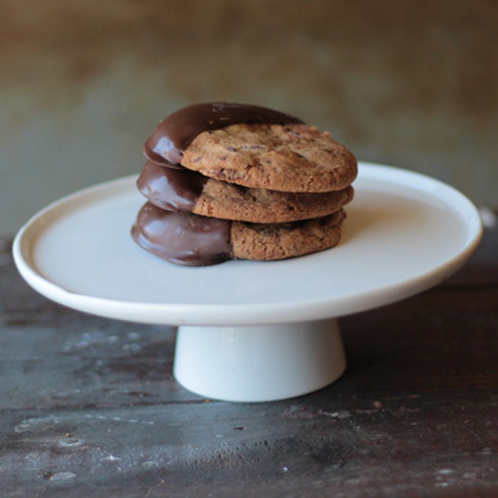 Santa can only eat so many cookies on his way from your house to the next, so be sure and seal your cookies airtight so they last for you and your friends. Place an assortment of cookies on Christmas trays for guests to take home as well. Moeller's gingerbread men, Dessert Gallery's chocolate chip dipped cookies, and homemade sugar cookies all go well with a cold glass of milk. Consider making ice cream sandwiches with your leftover chocolate chip cookies, too!