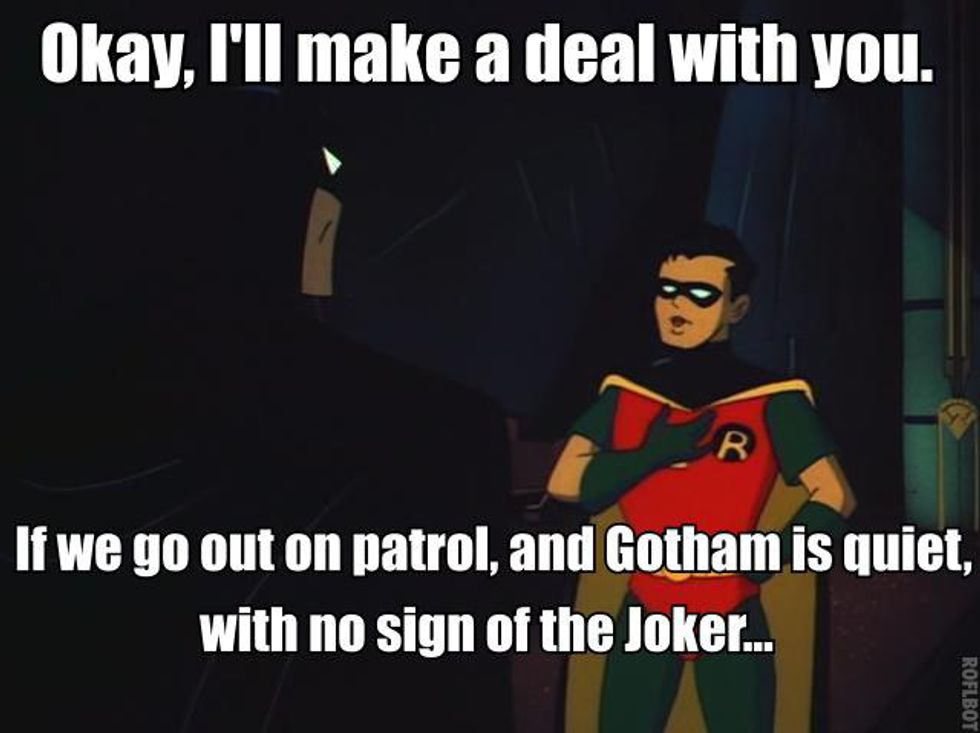 " Christmas with the Joker", the second episode of "Batman: The Animated Series", really should be known as the episode to prove the legitimacy of the series. The holiday episode starts with Joker escaping from Arkham Asylum and Batman and Robin have to find him and stop him from killing hostages. Not only was it a festive episode but it showcased all the talent the show had to offer. "On Leather Wings", the first episode, introduced audiences to Batman but when up against a tragic yet underwhelming villain. "Christmas with the Joker" introduced us to Dick Grayson aka Robin, Batman's sidekick, and represented the brighter side to Batman's dark world. For example, Grayson wants to show Bruce Wayne the film "It's a Wonderful Life" because it represents the beauty of the human spirit. Wayne, being broody, shrugs as if its a waste of time and rather be patrolling the streets of Gotham City.