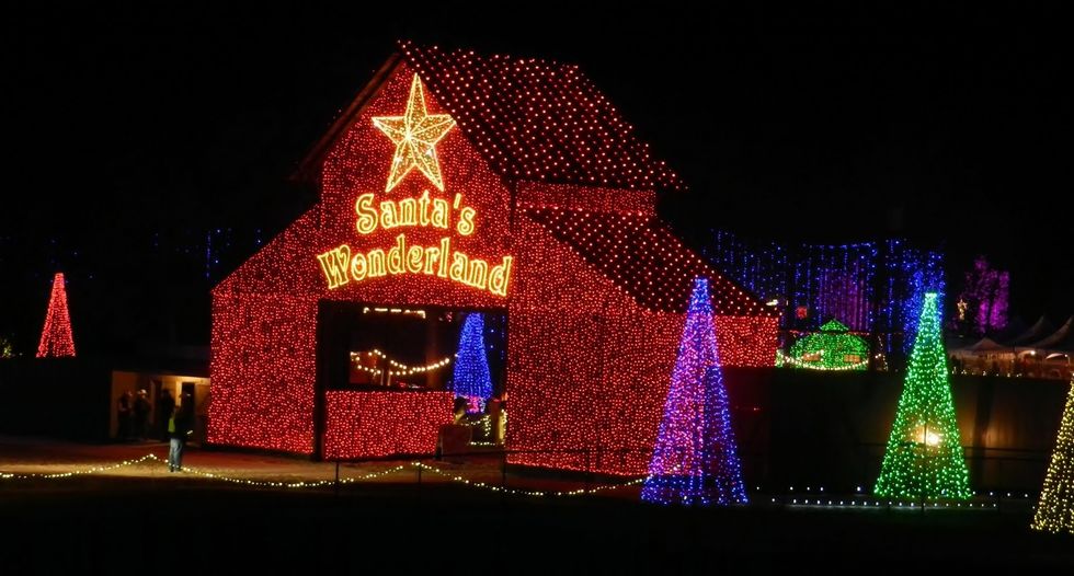 At Santa's Ranch, you can drive through over a mile of beautiful Christmas lights and animated Christmas displays. There are many different sections including classic Christmas, dinosaurs, and sports!