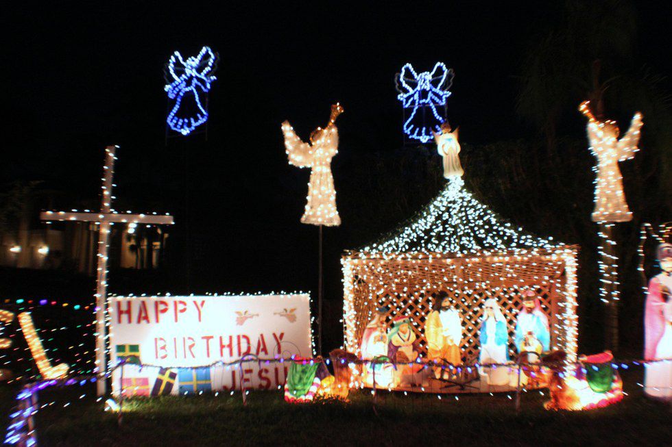 Description: Their lights are a huge happy birthday card to Jesus, with over 100,000 lights and displays everywhere. They have a misfit island, singing trees and a full manger scene. Do not forget your canned food as they are gathering goodies for Hope Women's Center.