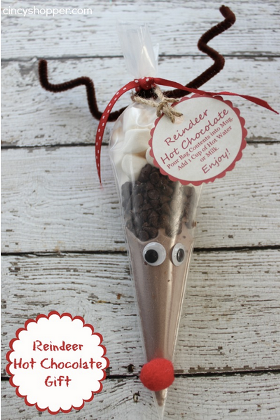This idea DIY tutorial is an awesome gift idea for co-workers, because you can knock out a sweet gift to everyone in just one shopping trip. And serious question… who doesn’t love hot chocolate? (Seriously... do non-hot-chocolate-lovers even admit to something like that?!)