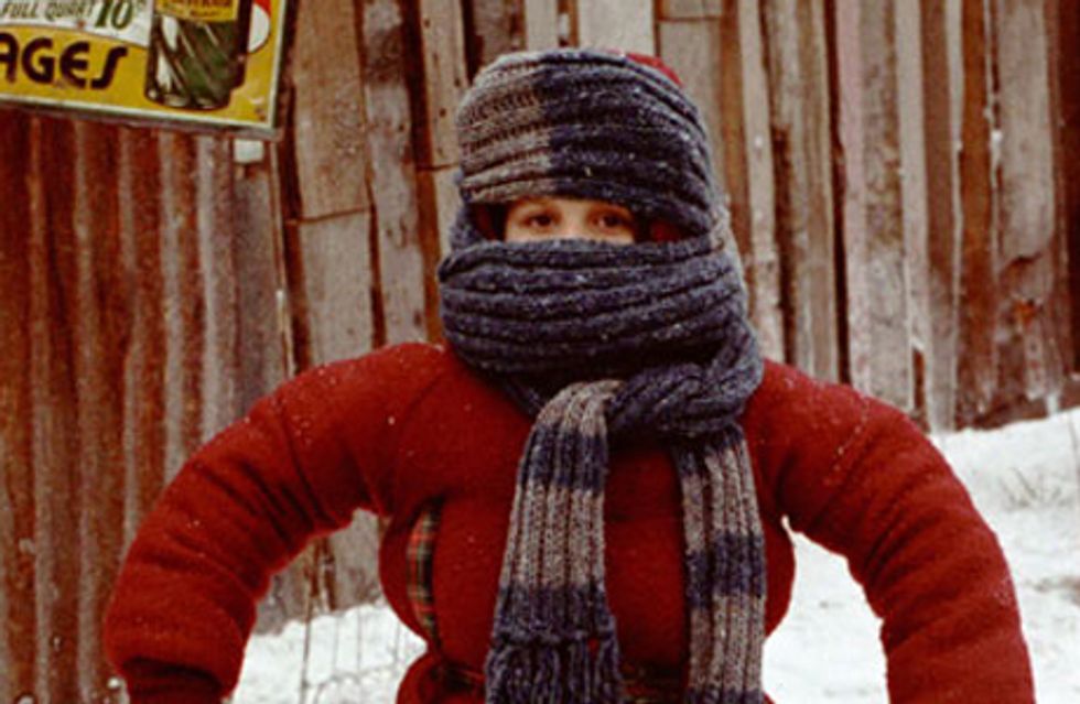 Walking to class in the bitter cold weather.
