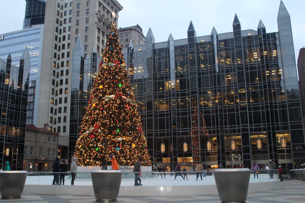 The beautiful rink in PPG Place circles around the Christmas tree.