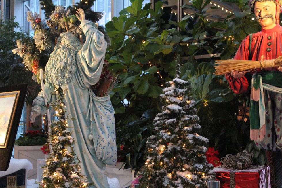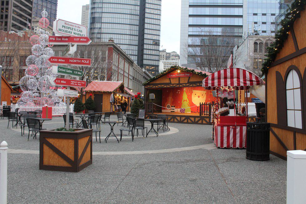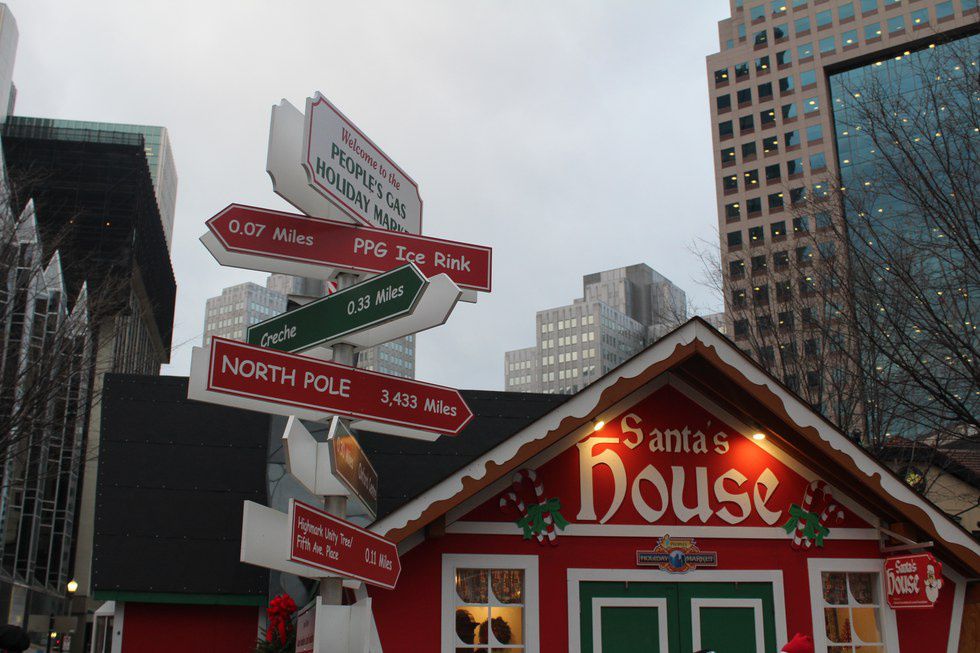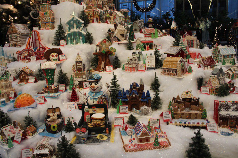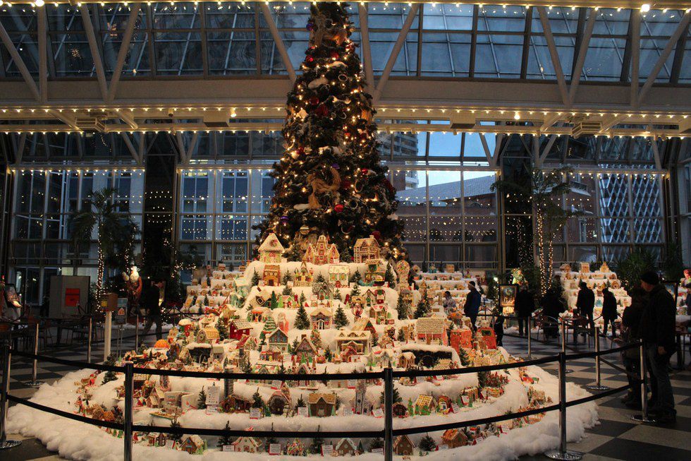 Inside One PPG Place, the Wintergarden displays scenes of holidays around the world, as well as a large Christmas tree with gingerbread houses made by local families, schools and citizens.
