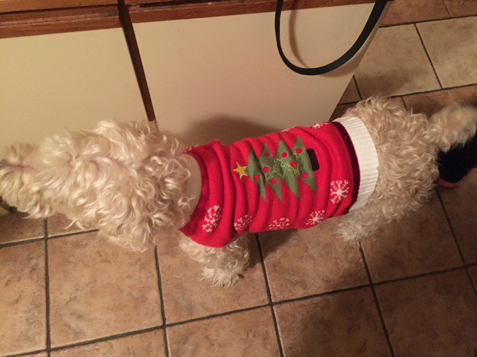Christmas is my favorite time of year. My house is the best in own with all of the lights. (we've won best lights in town before. so has my uncle.) I love the smell of a Christmas tree and decorating it and picking it out. I pick the best tree at the place. My dog likes to wear sweaters too.