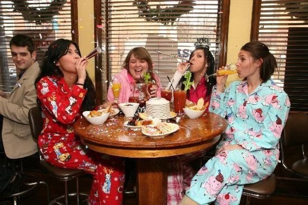 Wake up a little earlier and head to your favorite breakfast joint in your pajamas with a few friends.