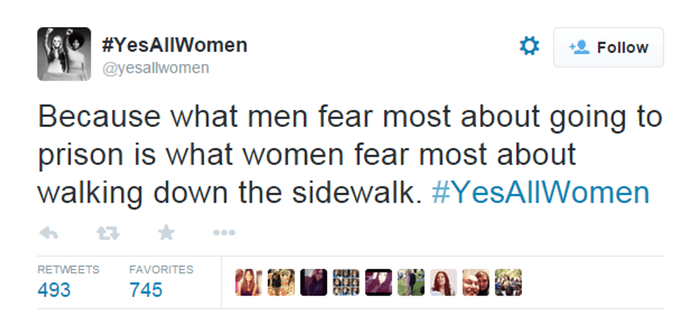 I remember just a few years ago when the “#NotAllMen” debacle started. The “#NotAllMen” movement was created by men to protest that not every man is of bad intentions or wants to cause women harm. Women everywhere countered the “#NotAllMen” argument with a movement of their own – “#YesAllWomen.” In this instance, one particular tweet from the “#YesAllWomen” movement sums up my experience and others like it perfectly. (See tweet below.)