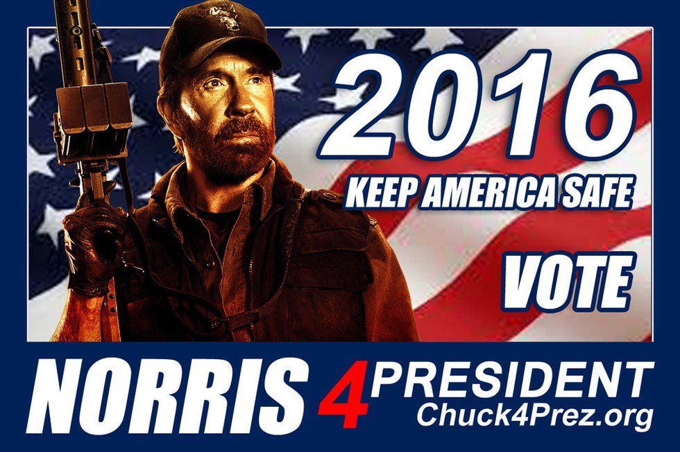 Let’s face it. Our presidential lineup between Hillary Clinton and Donald Trump is weak. Between a liar and a grotesque billionaire, our options for the next great leader of our country are a little depressing. With all general elections, the American people have the option to “write” in any candidate that they want. Most people wouldn't have any idea who they could write in, but fear no more, I have come up with the ultimate solution for our problem. Two words, Chuck Norris. With key points on Norris’ resume including being able to unscramble eggs, once bowling a perfect game with a marble, and donating his urine to NASA for rocket fuel, he easily exhibits the highest of qualifications needed to run this country.