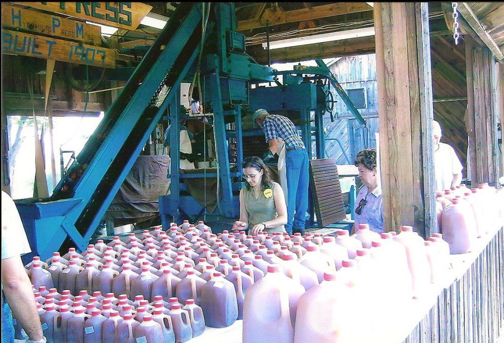 Producing hundreds of gallons of cider each year over the appointed weekend, the large machine swallows apples by the bushel. While I have no estimate as to how many hundreds of gallons are sold, I can say that very few people in line exit the queue without buying at least one. Smart shoppers dump their children from little red wagons and strollers and fill the empty space with as many jugs as they can. My personal record was buying either four or six gallons (literally as many as I could carry), and walking nearly a mile back to my car with purple fingertips from the weight of the load (alas, I had no children, wagon or stroller to help me). It was totally worth it.