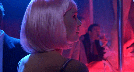Closer isn't always in neon coloration, however, the film's iconic scenes are. This romantic drama follows two couple that intertwine when some are unfaithful. Leading to the two characters who were cheated on interested in each other. What made this film iconic was Natalie Portman's character's neon pink wig. This scene is in neon to compliment her attire and represent the moment between her and Clive Owen's character. Whenever these characters are together there is often some kind of bold coloration whether it be pink or blue.