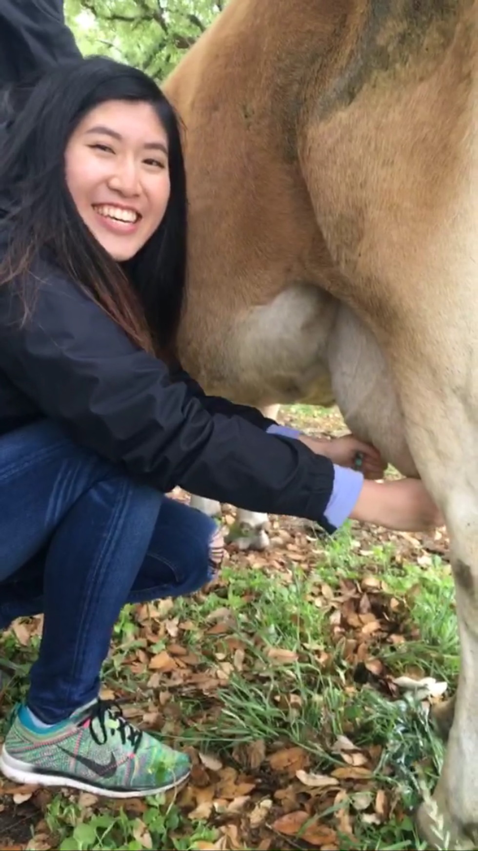 The experience of milking a cow was different from the way I imagined it to be in a few ways. The first was that the milk did not come out of the cow’s teats (nipples) as fast as I thought it would. It could have also been the way I milked it. The second was that I didn’t realize how dirty cows are, especially since they roll around in the dirt. Thus, as a semi-germophobe, I was grossed out initially, but my childhood wish overcame that real fast.