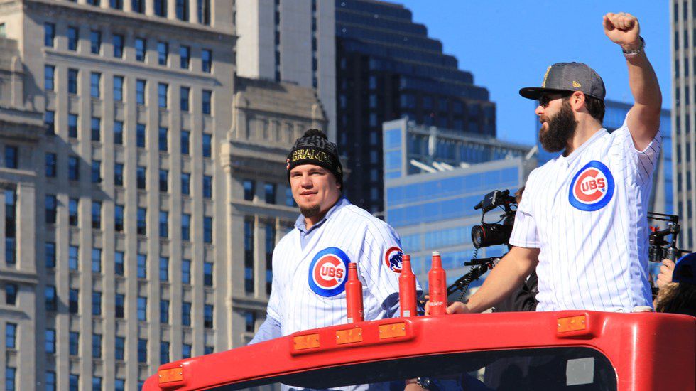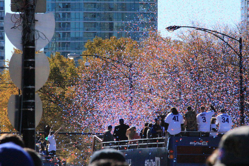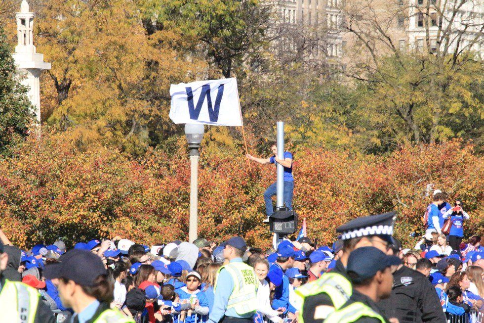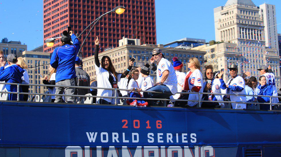 So what did this mean to the city of Chicago and to the Cubs fans? Why not throw a old fashion parade and rally where everyone can come together and celebrate. That's what they did! Over 5 million spectators arrived to Grant Park early on November 4th at 6am to get front row seats and as the day went on, many more fans joined in. My day started by getting up and being at the Metra Train by 5:51 a.m. and be downtown at 7 a.m. Myself and a couple of friends went to get some Starbucks and proceeded to Grant Park and by that time, thousands of individuals have arrived. Everyone waited and so many of them sang "Go Cubs Go" and it was fantastic! The gates didn't open until 8:15 a.m. and everyone ran towards the security checks and settled in where they would like to spectate the parade. Everyone waited since the parade started at 10 a.m. at Wrigley Field until 12:15 p.m. where the rally was going to be held. The atmosphere was amazing and it was beautiful seeing a sea of blue that poured in as the day went on. Not only did Chicago prepare for the parade and rally, but also the CHICAGO RIVER was different! The city dyed it Cubbie Blue to commemorate the Cubs victory. I was glad to have been a part of this memorable event as a Cubs fan. Now that the years have passed, lets see if the Cubs could bring another win next year.. the city wont stop there.. that's for sure.