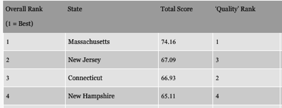 2018 chart from Forbes, showing Massachusetts and New Jersey in the top 3 for quality public education.