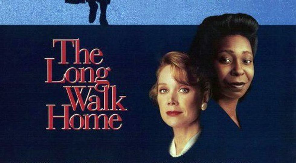 "The Long Walk Home" is the mirror which reflects American society's deep divisions based on race. The last scene of the movie when Mrs. Miriam Thompson and her daughter, Mary Catherine, join with their maid, Odessa, and other African-American women standing up against a great number of white men seems to be central to the message that is drawn from the film. It successfully reflects the tense confrontation between the oppressed and the oppressors and how opposite viewpoints these groups of people have it when they see the decisive action of Mrs. Thompson in standing by an African-American.