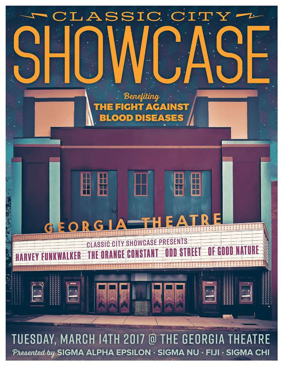 The Classic City Showcase, a concert for a cause, will be held for the third year that night at the Georgia Theatre. Tickets are $15 each, and all proceeds will go towards the Leukemia and Lymphoma Society and Relay For Life.