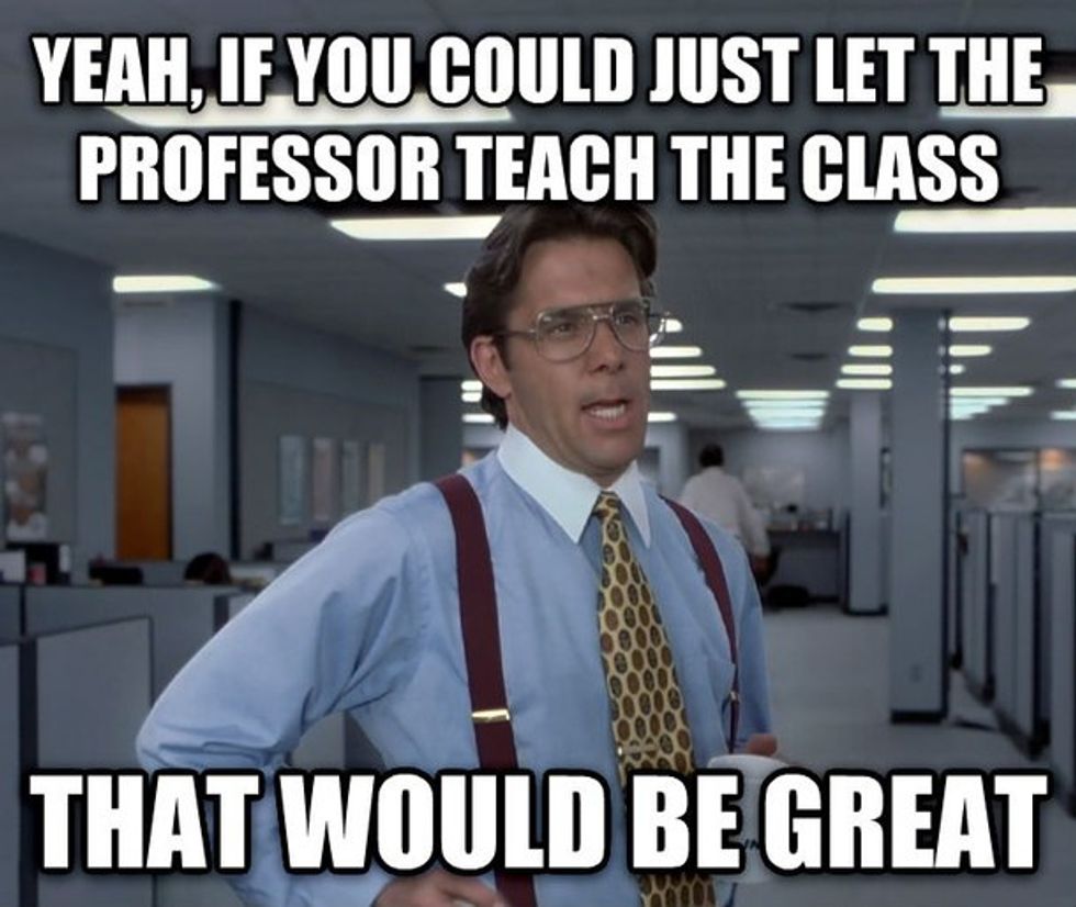 Since college started for me 3 years ago I have encountered quite a few people in my classes whom words do not do justice to explain. College classes are different than high school classes because you don't have to be friends with the other students in your class. Although, the classes have changed along with the professors, there will always be that one kid in class. Here is a list of 7 types of kids that can be found in every classroom: