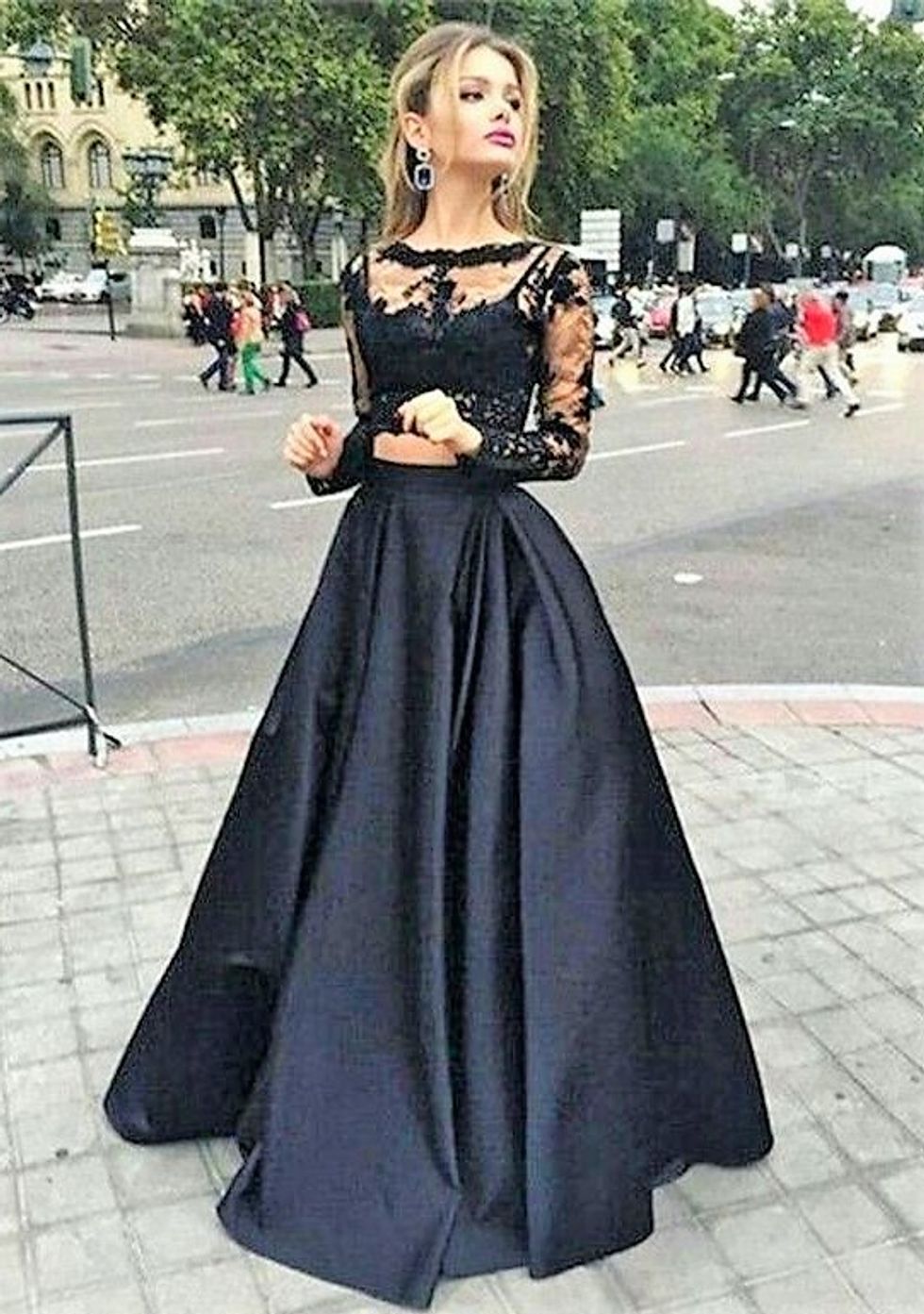 Black is such an elegant color, and the picture above is a gorgeous two-piece lace gown. Wearing black could also be a neat way of showing support for the #timesup movement.