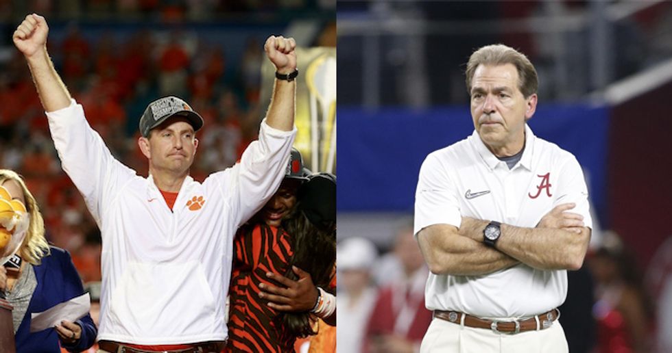 Dabo, such a character. You can't get a better example of sportsmanship. Unlike Saban, who wants to whine about every call, every play, and every loss.