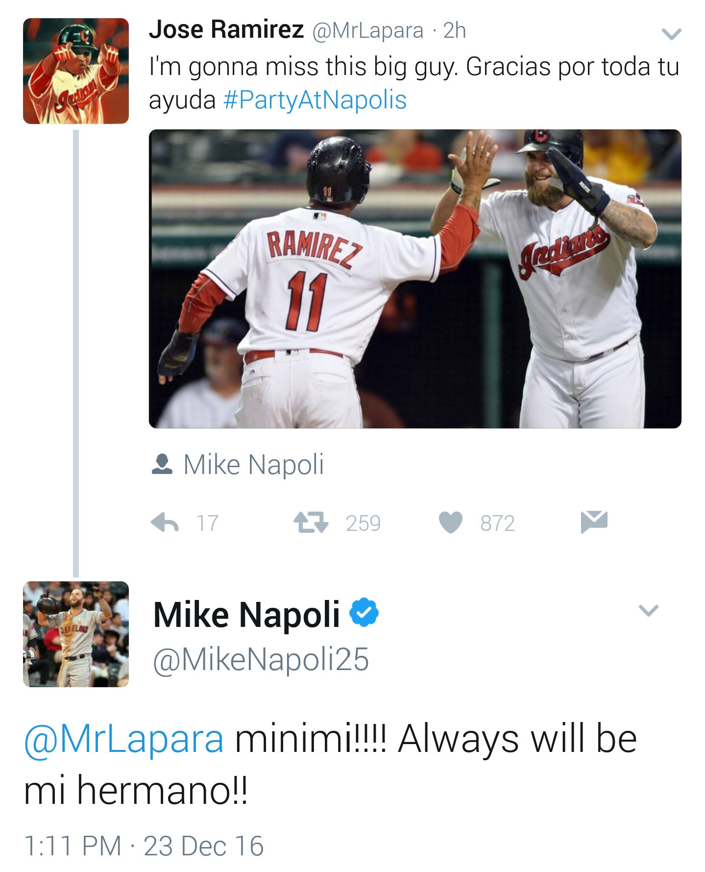 The Tribe is going to have even better hitting next year, along with even better pitching. A team that was already good enough to make it to game 7 of the World Series will be much improved. We have every missing piece filled, and I really feel like EE was the missing piece to this puzzle. Sadly, this does mean the Party At Napoli's is likely over. We'll all miss you, Mike! Thanks for all you did for us. We won't forget it. We can all agree with Jose on this one. I'm not crying, you're crying!