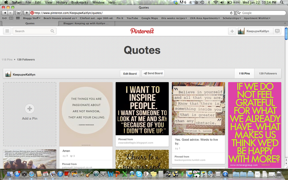 Because I like to be thorough, I have a board for every occasion, including fall, winter, classy, gym and formal clothing. Although I'm a connoisseur for yoga pants, which are pinned to the gym board, a place that is only figurative, I like to think I’ll pin all these cute outfits and one day own and wear them. When in reality, I'm totally fine wearing leggings and a VS hoodie every day of my life.