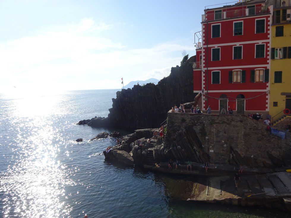 We spent the day skipping from town to town. After a few boat rides, a delicious seafood lunch, hiking, and sunbathing, we ended up at Riomaggiere. Instead of grass, rocks created this hill. Fellow travelers would climb the steep hill and catapult themselves over the edge and into the water, sometimes a 50-foot drop, just barely missing the rocks below. "We should jump," she said. Our initial reactions were hesitation and fear, but we were easily convinced. You only live once, right? So we climbed barefoot up the rocks, our hearts beating so fast they could burst through our chests. Our legs and lungs burned, our faces were tinted pink, but the view from the top truly left us breathless. The coastline and the sky and the city itself were all connected. The sun shined down on the water, giving it a glittery effect, as if fairies were casting a spell. The pastel colors of blues and greens and yellows and pinks blurred together as we slowly closed our eyes, grabbed each other's hands, let go of fear, and jumped.
