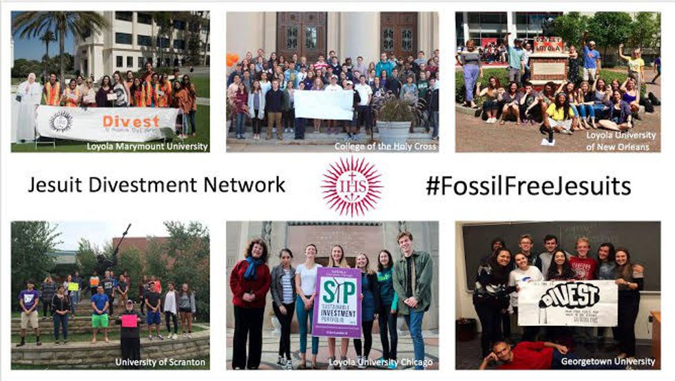 College of the Holy Cross, Loyola University New Orleans, University of Scranton, Loyola Marymount University, Boston College, Georgetown University, Loyola University Chicago, Canisius College, and Santa Clara University have all joined the Jesuit Divestment Network in an effort to engage students in celebrations and actions meant to illustrate the link between Jesuit values and socially responsible responses to climate change. This includes ethical investments--and all of these schools have investments in fossil fuel industries.