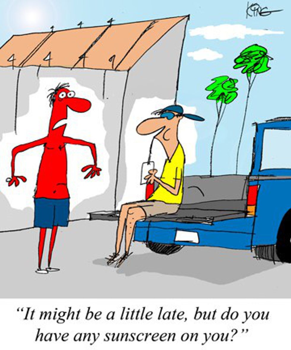 Typically said by your mother, and sometimes some very kind friends, is a phrase that will be said consistently this summer. Unknown to most, “non-pale” folk, we have a few secret weapons to protect ourselves from the sun, and one is SUNSCREEN! Sunscreen is key, but so are big hats, a shade break, and a nice swim in the ocean. So, don’t hide under an umbrella, or wear a shirt and pants, instead just use that good old 50 proof sunscreen. Protection is key, and if you are just smart with your preparation, there will be no worry of turning to a shade of red. Toast a little like a well done marshmallow, and steer clear of the lobster look.