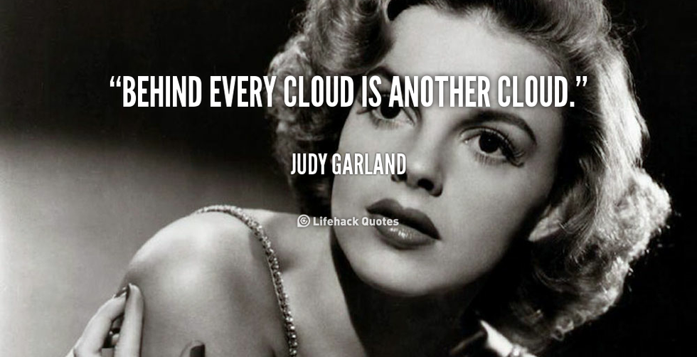 Exactly Chris Rock. How, in God's name, does a cloud weigh 1.1 million? And how did scientists figure that out? And if they are so heavy, why don't they fall out of the sky and crush people? And since we're on the topic of clouds, what the fuck does this Judy Garland quote mean:
