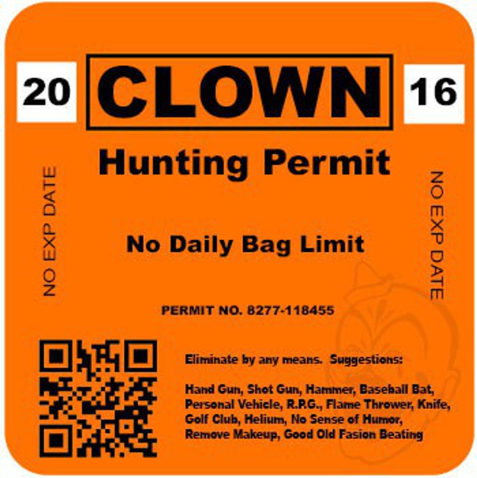 You may have noticed that in the past few months there has been a sharp uptick in creepy clown sightings primarily in the Southern region of the United States. At first, it was the occasional roadside clown meandering about the highway. With Halloween around the corner and the recent release of Suicide Squad it was nothing out of the ordinary for the occasional clown spotting. However, things have recently escalated the clowns have begun wandering into yards, and have attempted to lure children into the forests, possibly where more clowns are waiting to attack and eat them. Some firearm carrying citizens have taken it upon themselves to eradicate the clown varmints but with limited success. Now there are even reports that in retaliation the clowns are plotting their very own purge the night before Halloween. The DNR has yet to release a solid figure on the current clown population but this writer believes that it is only a matter of time until permits are issued to residents nationwide.