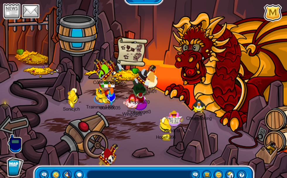 Through the year, Club Penguin hosted many themed parties. The island would change to fit the theme, and there'd be many free items that players could receive. One of my favorites was the Medieval party. You could dress up your penguin as a knight, dragon, princess, etc. and travel through Medieval themed mazes and fight off dragons as well (that led to cool prizes)!