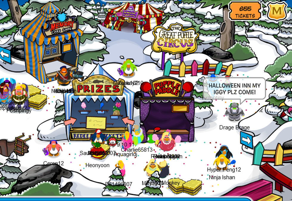 Every year in the fall, Club Penguin would host a fair. The island turned into one huge carnival, usually during the month of September. You were able to play games and earn tickets, in which you could exchange for cool prizes that were exclusive to the fair. Also, the iceberg turned into a huge ball pit, which was iconic in its own way.