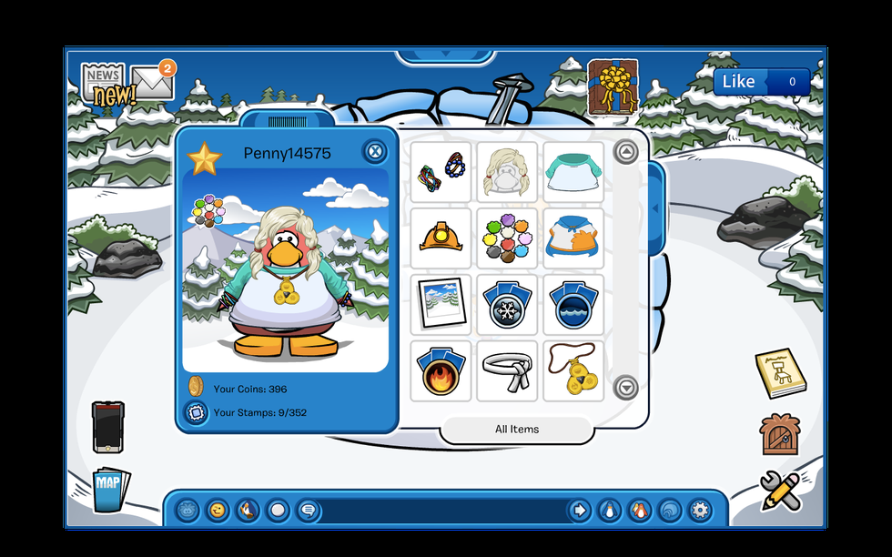 Naturally, my penguin name had to be witty and creative, so I put “penny”, so I could be “penny the penguin.” To my dissatisfaction, however, “penny” was already taken. But, Club Penguin graciously suggested “penny14575.” Whew, close one.