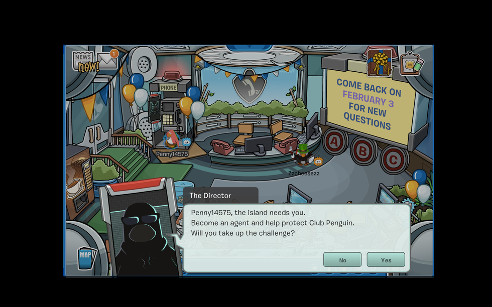 After a few good games of bean counters and a restored bank account, I continued to explore the penguin world. Checking out every shop, park, and chat room, I stumbled upon something strange: a place called the “Everyday Phoning Facility.” I went in and clicked on a phone, not suspecting anything. But once I picked up the phone, something spectacular happened: I was asked to become an agent to help protect my fellow penguins. I had completely forgotten about the penguin agency I used to love so much! I gratefully accepted the request and began my journey of serving the penguin community for the better.
