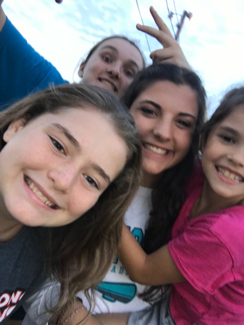 I’m overwhelmed as I try to listen to three different stories at once while trying to tell the other two kids to get out of the parking lot. I hop into a few of the older kids’ Snapchats that they make me be in and get offered snacks by a younger girl. This is what happens every day during cheer season. It’s stressful, but rewarding to say the least. They make me feel like a rock star.