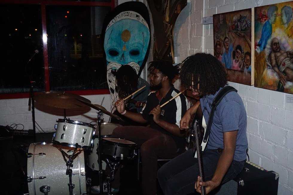 Crashing down upon listeners first and drawing them was the talented Jasmine Deja of Soapbox Soliloquy. Honestly, I'm always excited to watch her perform. Her vocals looped around the crowd and her sheer ability to shred has earned her rave reviews from fans and touring bands alike. Everyone remained in awe as she worked pedal board magic, experimenting with every effect and using every limb of her body to create sound paralysis.