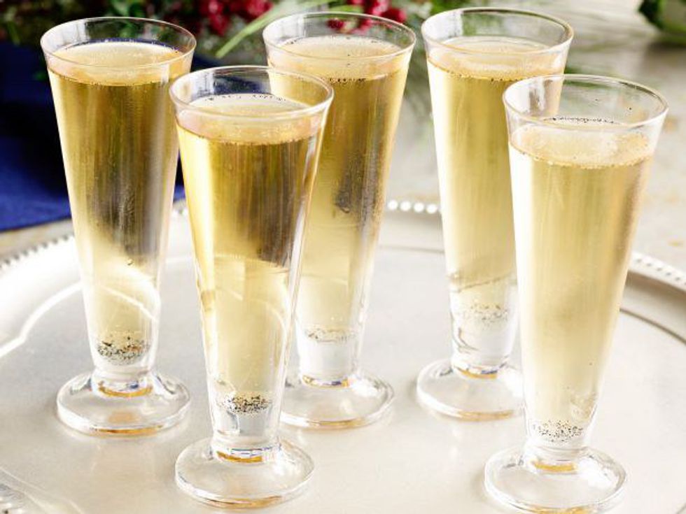 Champagne and Bourbon?! Waaa?! This is for the host that doesn't want to shake 100 different drinks for guests. It's simple and easy, plus everyone loves Champagne. You'll need vanilla beans, sugar, water, sparkling wine, and Bourbon. Now the question might arise of what Bourbon to use. This recipe calls for Woodford Reserve which is actually a good Bourbon. You can use any Bourbon just so long as it is good Bourbon. For more recipe details.