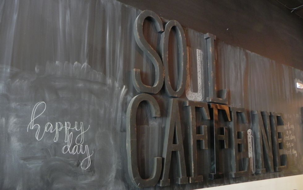 This place has my favorite atmosphere out of all the others: the comfiest couches, best music, full with people without being loud. It smells wonderful in here. And it's another place that I feel like I've gone to my whole life: I would find a small table to color at while my mom would have Bible study every week in the back corner, and I have a weirdly nostalgic attachment to their peach smoothies because of it. Also, the dandelion mural: perfect (although overused) photo opportunity.