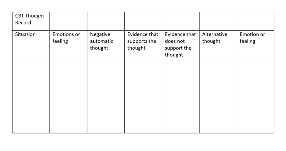 A thought record is a way to keep track of what goes through your mind and track down why you might feel a certain way.
