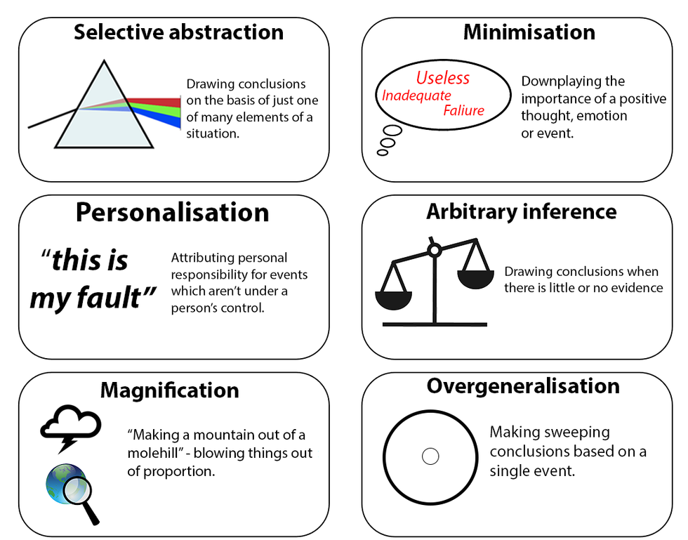 Unhelpful self-statements or thoughts usually cause us to feel unhelpful emotions such as depression or anxiety. This unhelpful thought pattern is called “unhelpful thinking styles.”