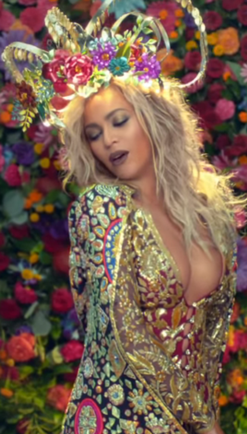 While portraying a Bollywood star in the movie within the music video, Beyonce's outfit bears little to no connection with actual Indian culture. This is especially true of the plunging neckline, which any Indian auntie could tell you has no relation to anything traditionally Indian. While it would be great if the outfit was used to show off the modernity and creativity of India that often seems to be missed by Western media, the juxtaposition with the more traditional outfit makes me think otherwise. Ultimately, I find it hard to believe that in a city like Mumbai, an actual Indian outfit that shows off Beyonce's beauty couldn't be found.