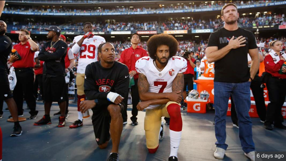 Whether sports fans or not, most of us have been hearing a great deal abounds on Colin Kaepernick's having taken a knee during the playing of the National Anthem. While NFL officials have borderline black-listed players across various teams that have peacefully protested during these ceremonies, commentators on all sides seem to have patriotism and nationalism confused into a outrage which reeks of fascism.