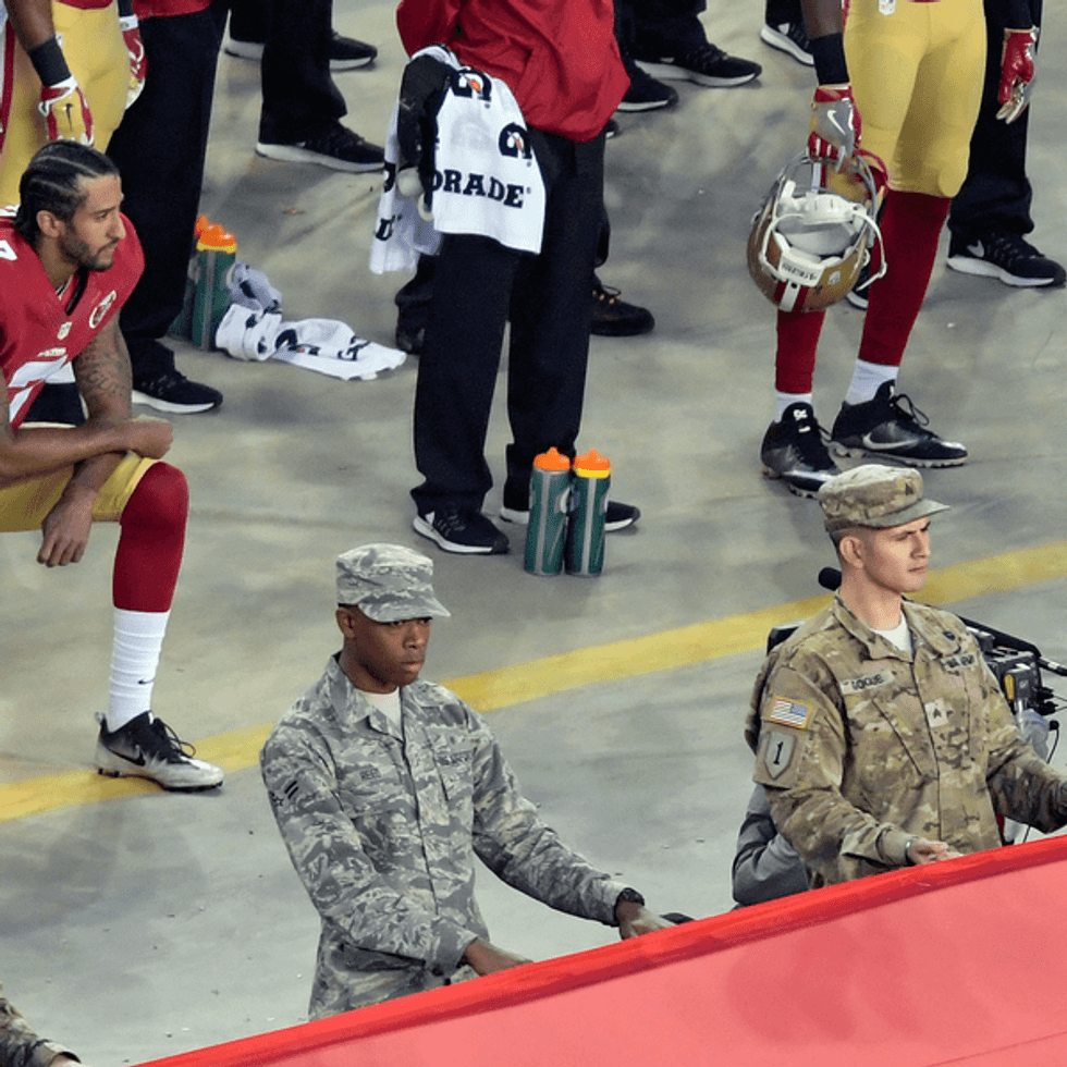 So while you're kneeling during the National Anthem and inspiring others to kneel as well, just remember this: you may have gotten your beliefs recognized, however, at the same time, you managed to shut down everyone else's and that is not what this nation is about. You were fighting for your freedom of speech while disrespecting the country that gave you that right; you, Mr. Kaepernick are a hypocrite.