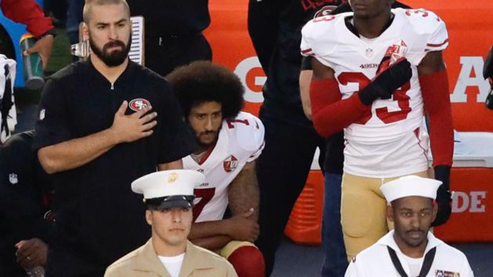 However, he wasn't the only athlete or player that did it. One of his teammates, Safety Eric Reid, took a knee to join Kaepernick before the 49ers-Chargers game.