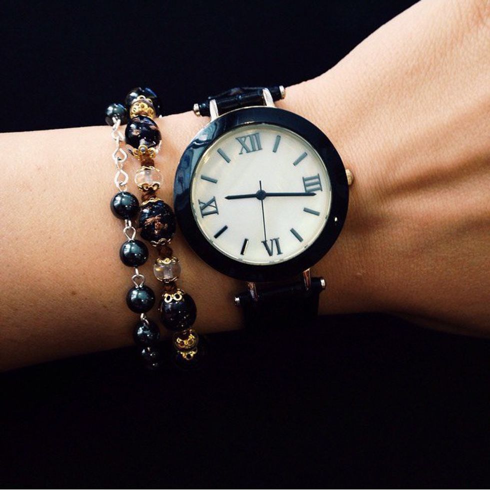 This onyx bracelet is one of my favorites. I picked it up in Rome, and as one might expect, it is a rosary bracelet. Onyx is believed to help the wearer let go of the past and focus on living in the present. It is also good absorbing negative energy, as many darker stones do. (Unfortunately, I don't have a picture of this stone, but trust me, it's pretty dark and amazing.)