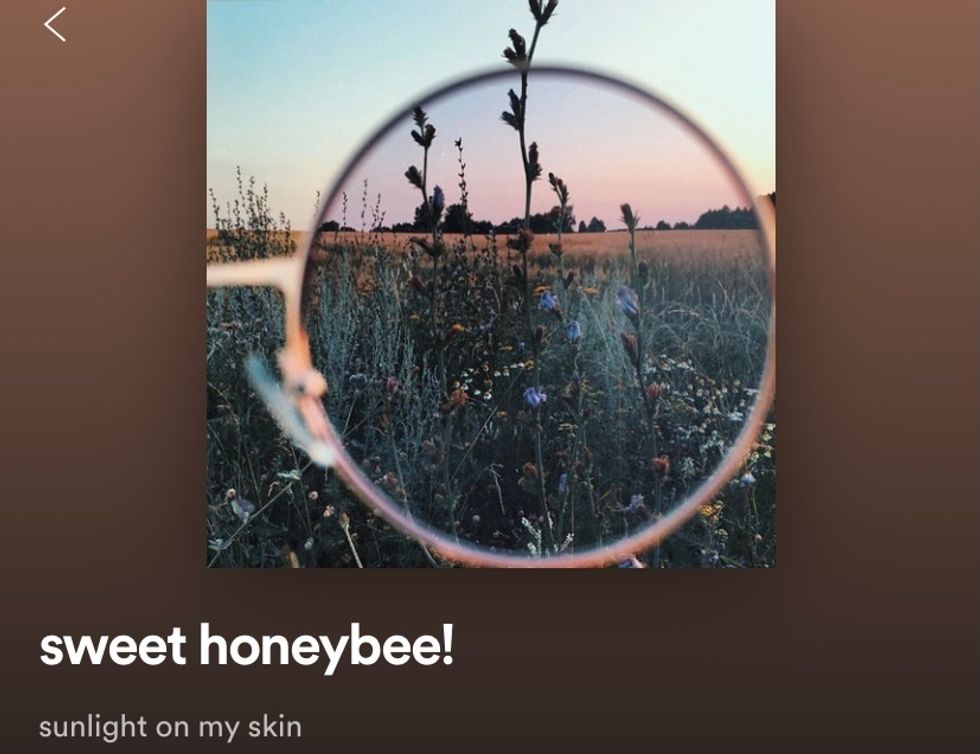 To uplift the feelings of a group, we are now at sweet honeybee, or known as the happy playlist. Like the description says, this playlist is what feels like sunlight on my skin, which makes me happy! If you ever need a pick me up or want to reverse the feelings of the last stop, this is your place! These are all songs that I have associated with good and cozy feelings, and is a fun playlist to listen to. The best time to come here is in the morning, it will change your entire day!