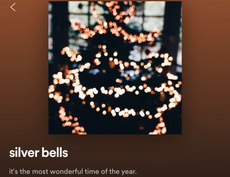 Favorite songs in silver bells: Silent Night - The Temptations, Little Drummer Boy - Pentatonix, It's Beginning to Look a Lot like Christmas - Michael Bublé, Santa Tell Me - Ariana Grande.