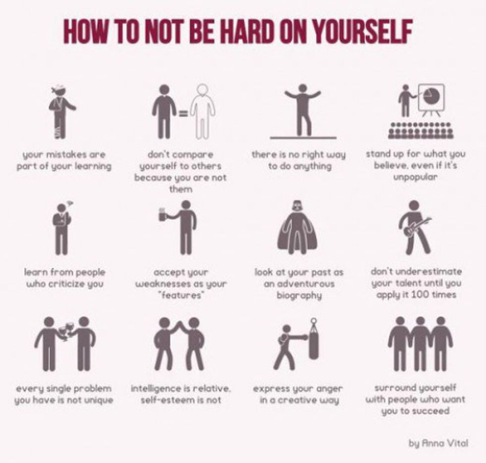 To overcome anxiety, you must practice a new mindset and explore new opportunities. Get out of your comfort zone, even if it isn't but a small gesture. Like I stated before, you shouldn't force yourself to start doing something that you're far from ready to do. Start small. For example, I recently just started writing for the Odyssey. I love writing, but I have always been too much of a nervous wreck to ever portray my thoughts to other people. Since I've been here, at VCU, I have been making small changes to overcome my anxiety and do the things I love and want to do. Only good has come from it.