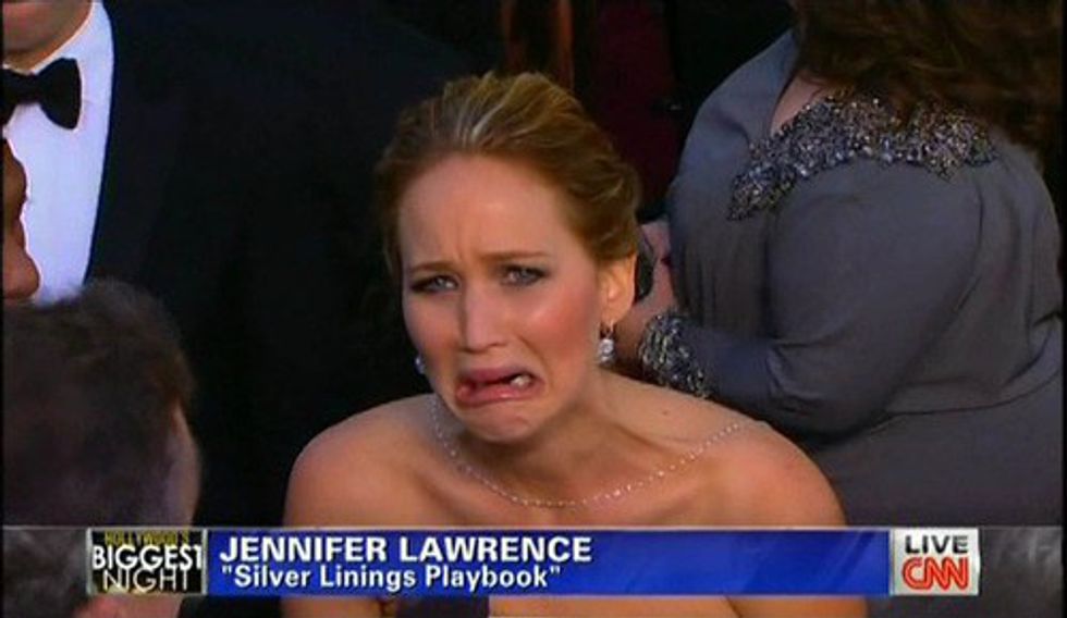 Whether you saw her in "The Hunger Games" franchise, "Silver Linings Playbook," or another movie, you have to admit that Jennifer Lawrence is a woman of many faces. In fact, she has a facial expression for every situation in college.